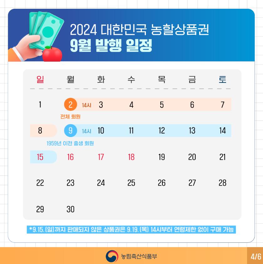 올해 9월에 발행되는 농할상품권의 상세 일정은 다음과 같습니다