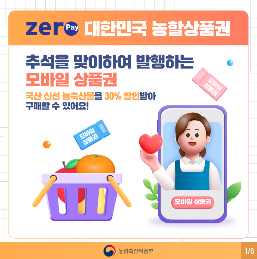 2024년 추석을 맞이하여 준비된 농할상품권을 통해 알뜰하고 풍성한 명절을 보내시길 바랍니다. 최대 30%의 할인 혜택으로 신선한 국산 농축산물을 저렴하게 구매하고, 사랑하는 이들과 함께 따뜻한 추석을 보내시길 바랍니다.