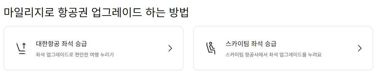- 좌석 업그레이드 옵션 선택 후 마일리지로 결제