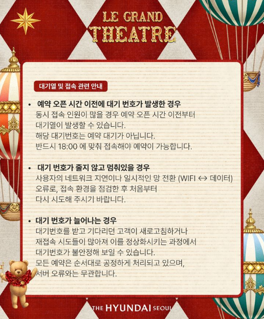 - 예약 링크 공개: 오후 5시 (더현대 서울 공식 카카오톡과 인스타그램에서 확인 가능)