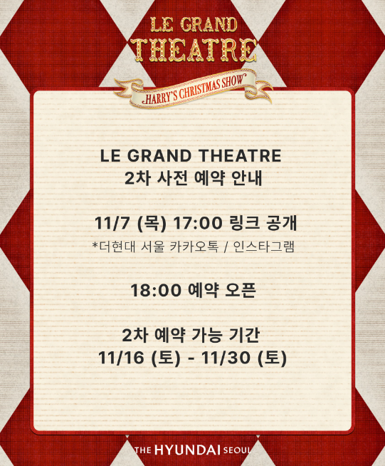 더현대 크리스마스 전시는 매년 인기를 끌며 매진 속도가 빠르기로 유명합니다. 특히, 올해의 'LE GRAND THEATRE 해리의 크리스마스 쇼'는 환상적인 연출로 더 많은 사람들의 관심을 받고 있는데요. 예약 성공 꿀팁을 참고해 2차 예약에 성공하시고, 실패 시 현장 웨이팅 팁도 함께 활용해보세요! 소중한 사람들과 특별한 크리스마스 추억을 만들 수 있기를 바랍니다. 추가 문의는 더현대 서울 카카오톡과 인스타그램을 통해 확인하시길 바랍니다.