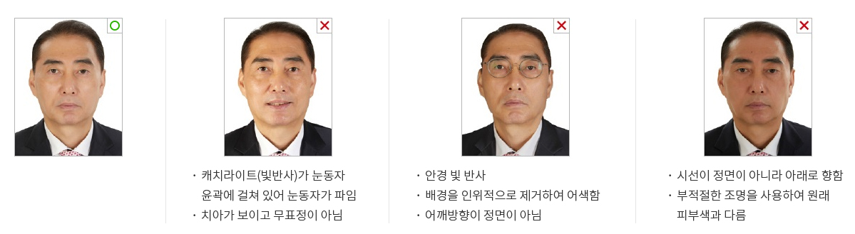 ☑️ 눈동자에 적목 현상이 없어야 하며 빛 반사가 있는 경우라 하더라도 본인 확인이 가능하며 눈동자 모양이나 색에 영향을 주지 않는다면 사용이 가능하다고 합니다.