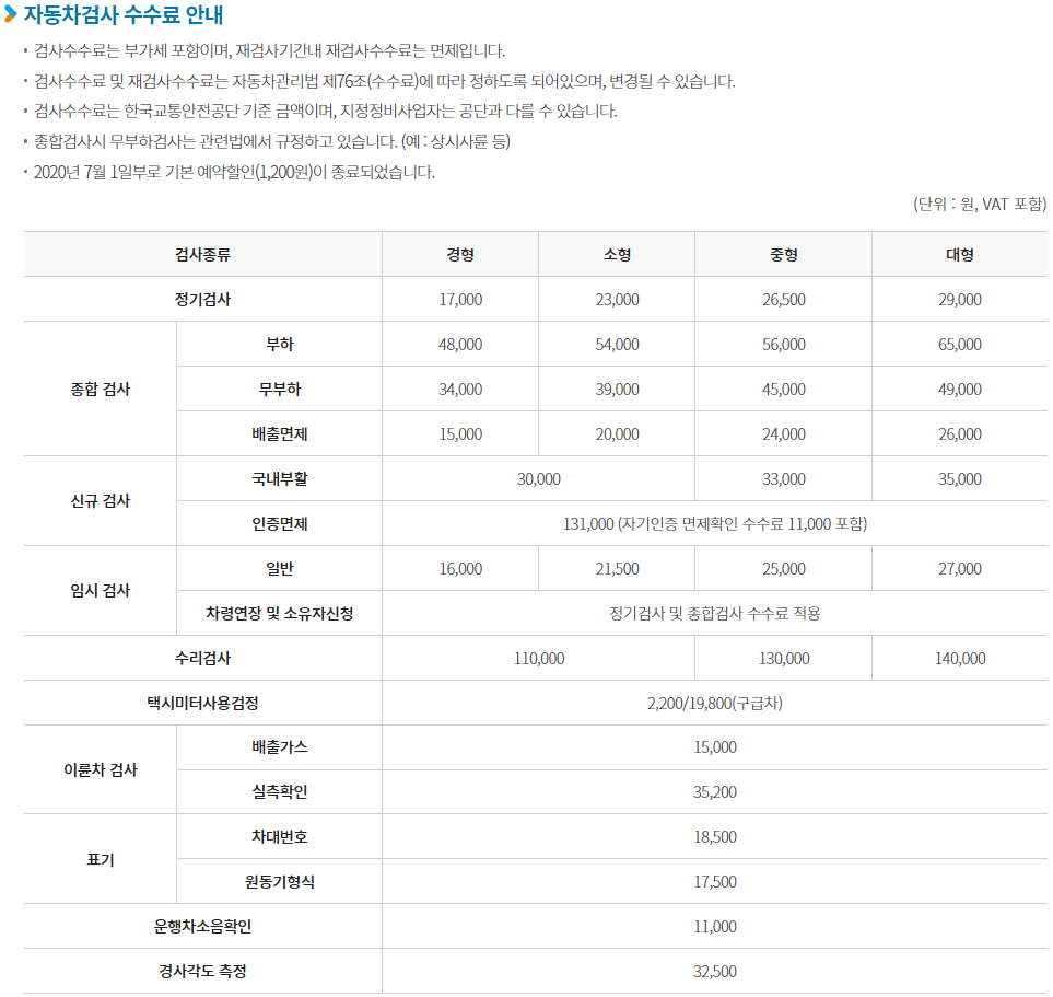 자동차검사 예약 비용 3