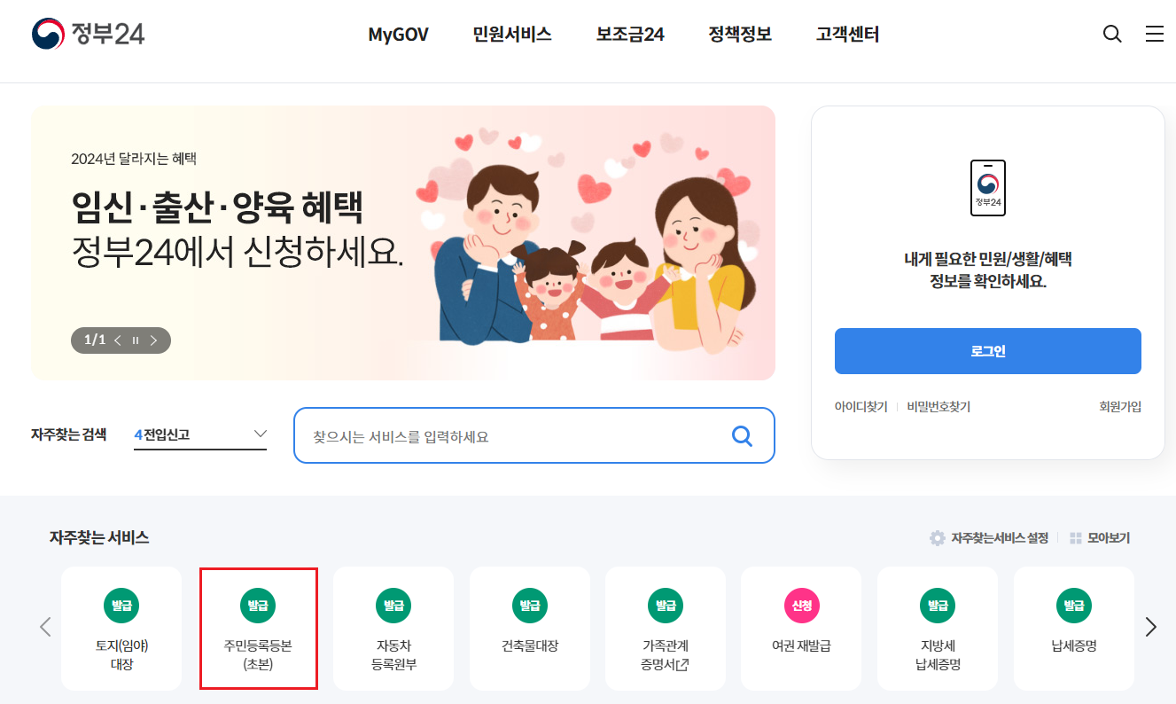 주민등록등본 인터넷발급은 정부24 홈페이지에서 하시는 것이 가장 간편하고 빠릅니다.