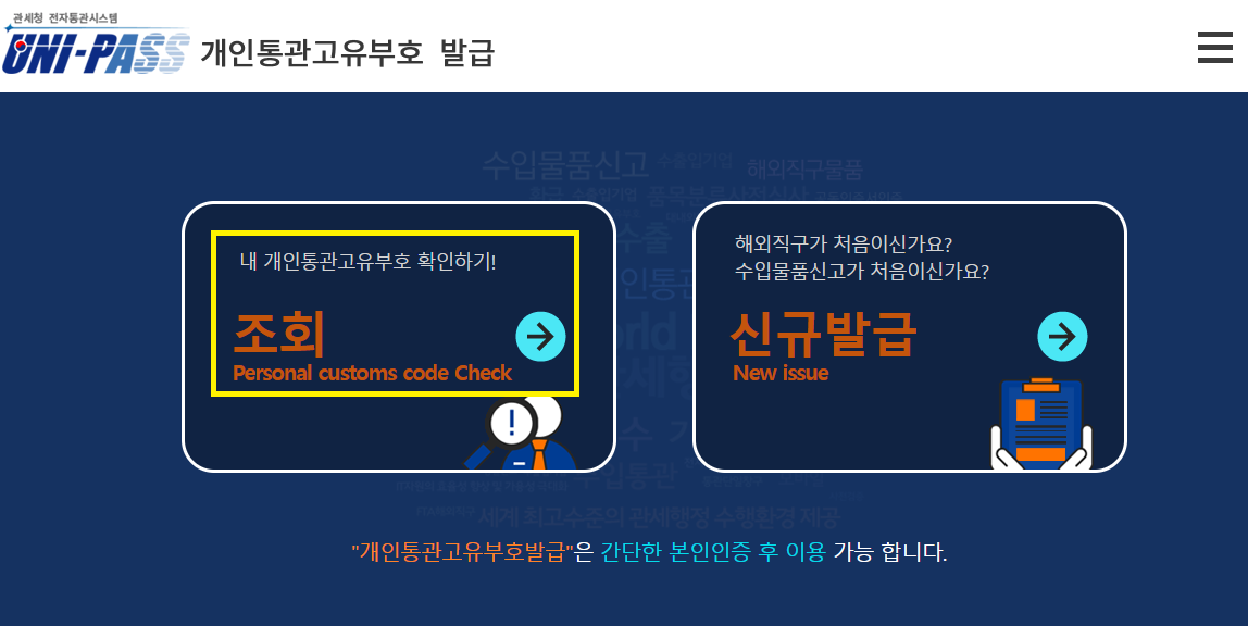 통관번호 조회, 관세청 개인통관고유부호 조회