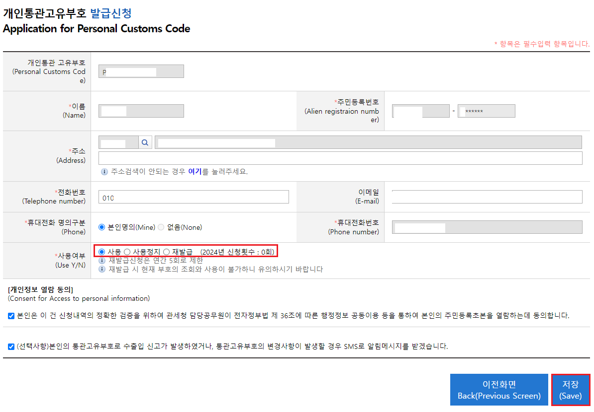개인통관고유부호 발급